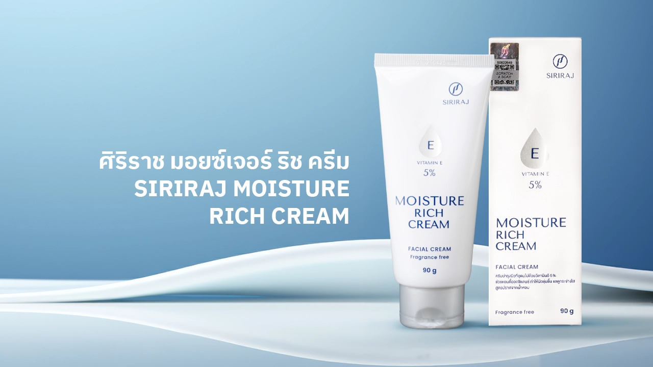 หากคุณกำลังมองหา Moisturizer ที่ให้ความชุ่มชื้น SIRIRAJ MOISTURE RICH CREAM คือผลิตภัณฑ์ที่ตอบโจทย์ได้เป็นอย่างดี ด้วยส่วนผสมของ Vitamin E สูงถึง 5% ที่ช่วยต่อต้านอนุมูลอิสระ และมอบความชุ่มชื้นได้อย่างล้ำลึก เหมาะสำหรับผู้ที่ต้องการฟื้นฟูผิวให้กลับมาอิ่มฟูและสุขภาพดีในทุกวัน