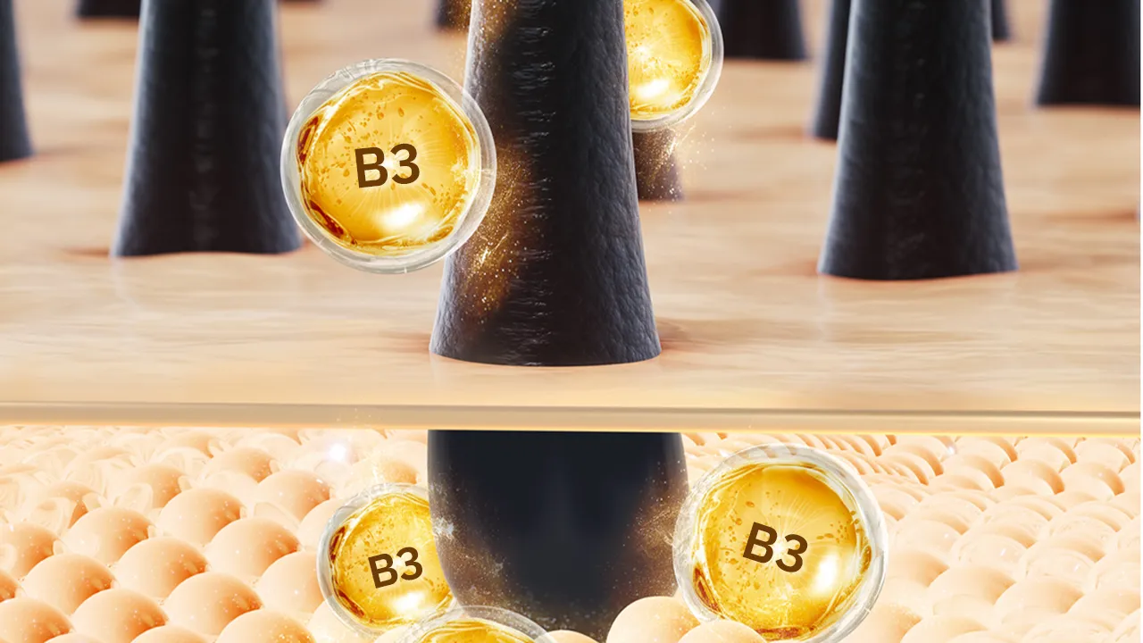 ไนอะซินาไมด์ (Niacinamide) ใน Vitamin B3 ช่วยลดการอักเสบของหนังศีรษะได้อย่างมีประสิทธิภาพ พร้อมทั้งเสริมความชุ่มชื้นให้ผิวบริเวณโคนผม นอกจากนี้ยังช่วยเสริมเกราะป้องกันผิวบริเวณหนังศีรษะ ลดการระคายเคือง และทำให้หนังศีรษะแข็งแรงขึ้นเมื่อใช้อย่างต่อเนื่อง